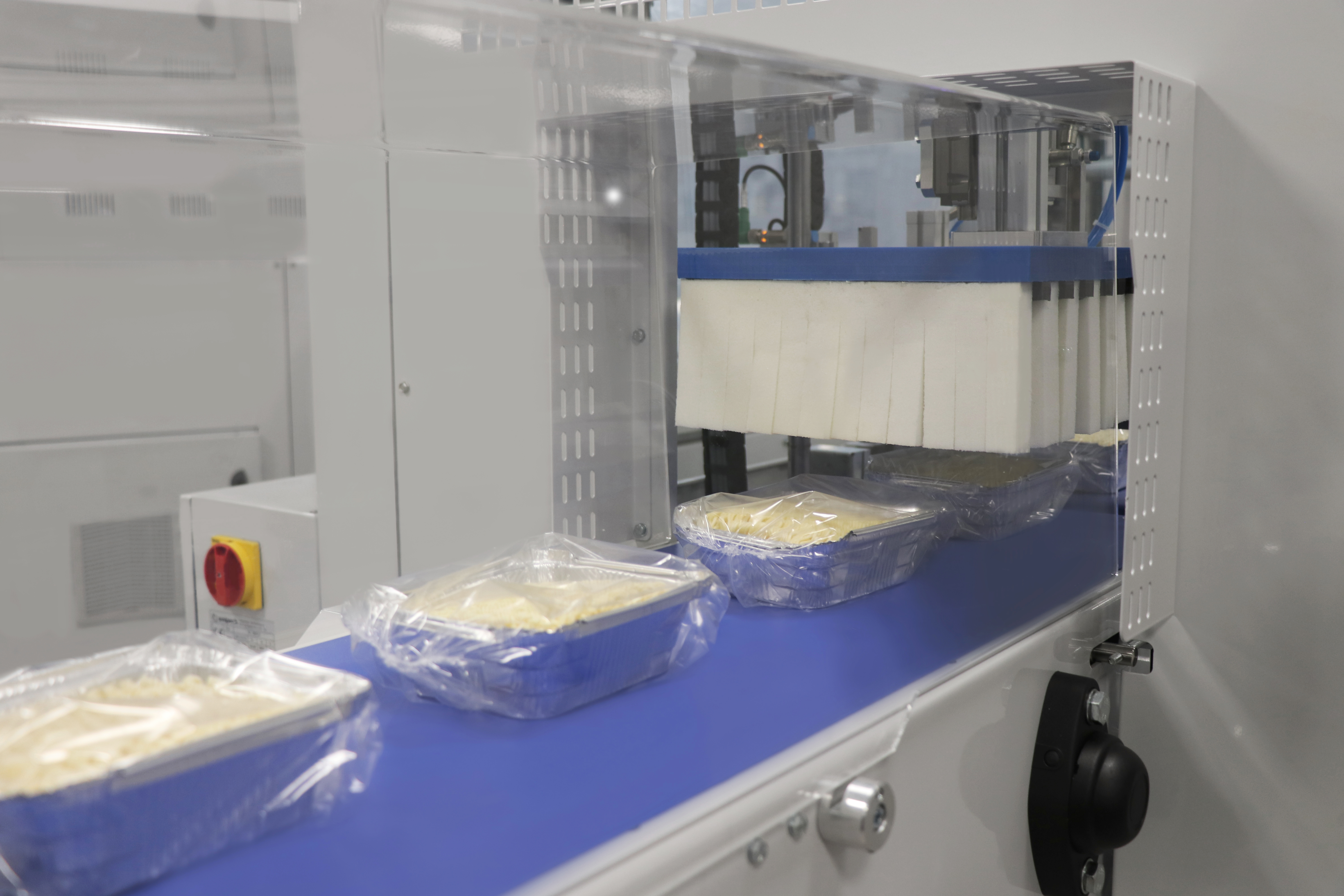 packs in 1x1 film only - trays with bread